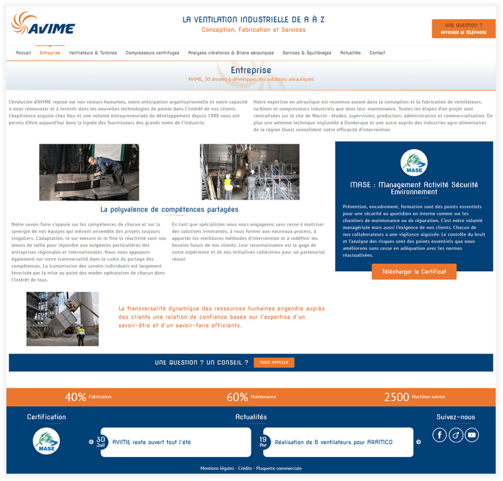 Accompagner la société AVIME dans la refonte de son site internet avec la possibilité de gérer le contenu en toute autonomie.